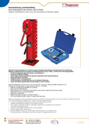 Béquille de stabilisation arrière spécialement conçue pour les SR à silo basculant. Dans le cadre d‘une révision du véhicule, elle offre,