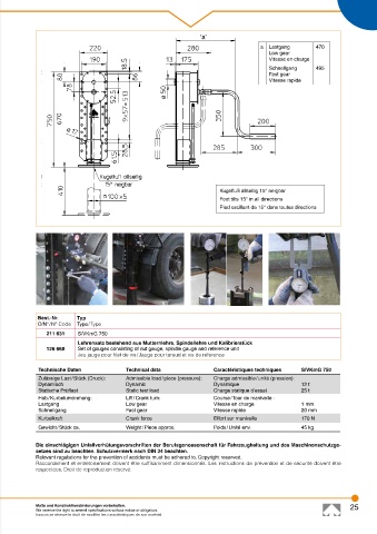 Zulässige Last / Stück (Druck): Admissible load / piece (pressure): Charge admissible / unité (pression):