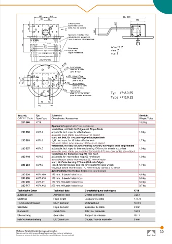 Zulässige Last Admissible load Charge admissible 0,25 t