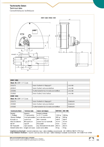Technische Daten Technical data Caract. techniques KWV1250 KWE 1000