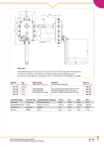 200 145 242.2 Engrenage â tout usage Tambour de câble correspondant Ø 70 mm 200 149
