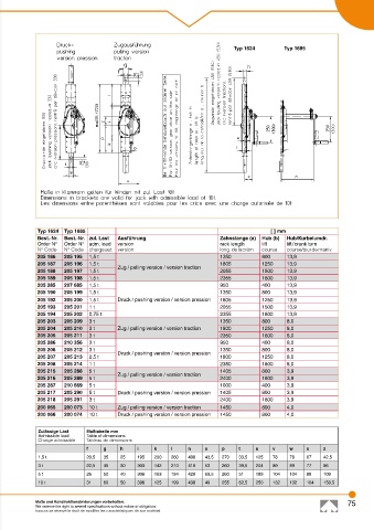 Best.-Nr. Best.-Nr. zul. Last Ausführung Zahnstange (a) Hub (b) Hub/Kurbelumdr.