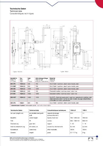 Bestell-Nr. Typ Hub Zahnstangenlänge Material