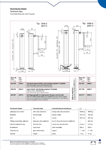 202 616 2044.3 ohne Kurbel, mit allseitig neigbarer Fußplatte Telescopic drop type additionally * Broche de positionnement en plus * 207 769 2083.3