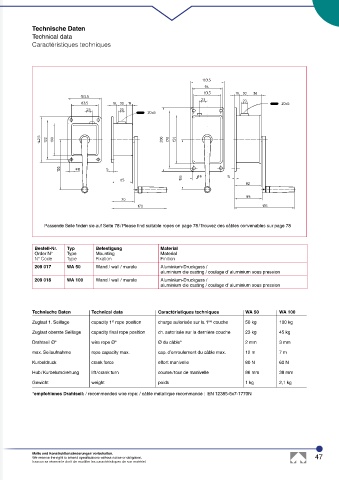 Technische Daten Technical data Caractéristiques techniques WA 50 WA 100
