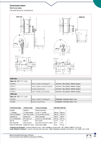 Technische Daten Technical data Caract. techniques KWV 650 KWE 650