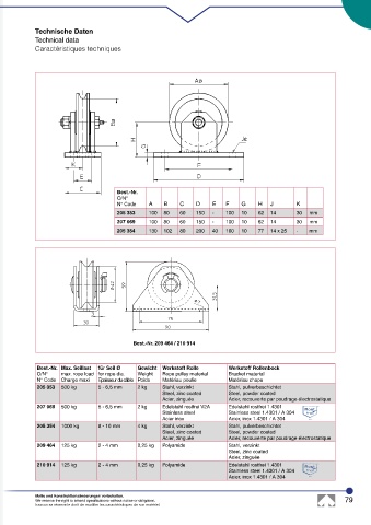 Best.-Nr. Max. Seillast für Seil Ø Gewicht Werkstoff Rolle Werkstoff Rollenbock