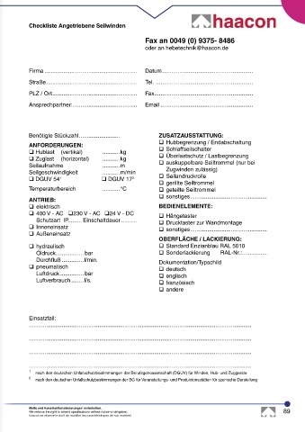 Seilgeschwindigkeit ...........m/min Zugwinden zulässig)