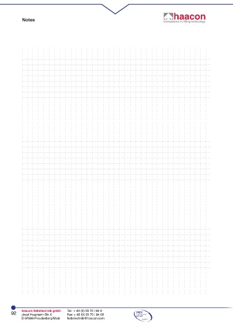 Notes Competence in lifting technology 92 haacon hebetechnik gmbh Tel.: + 49 (0) 93 75 / 84-0 DMSZ Fax: + 49 (0) 93 75 / 84-66 Josef-Haamann-Str. 6 Zertifiziert nach D-97896 Freudenberg/Main hebetechnik@haacon.com ISO 9001 QM 00414