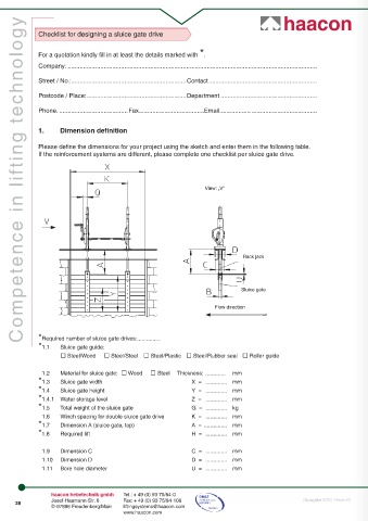 1.6 Winch spacing for double sluice gate drive K = .............. mm