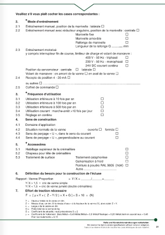 Z = Niveau d’eau en dm. Si le niveau d’eau < à la hauteur de la vanne (Y), alors saisir Z = Y.