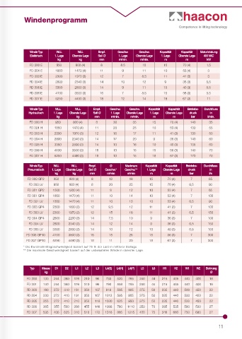 Winde Typ WLL WLL Empf. Geschw. Geschw. Kapazität Kapazität Betriebs- Durchfluss