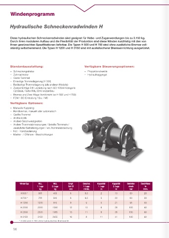 ständig selbsthemmend. Die Typen H 1200 und H 3150 sind mit ausfallsicherer Bremseinrichtung ausgerüstet.