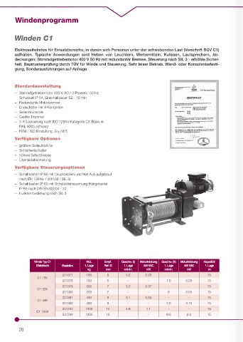 Winde Typ C1 WLL Empf. Geschw. (I) Motorleistung Geschw. (II) Motorleistung Kapazität