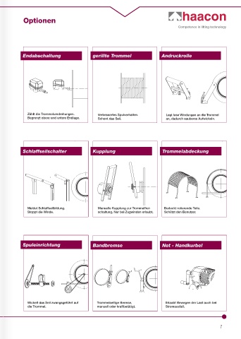 Begrenzt obere und untere Endlage. Schont das Seil. an, dadurch sauberes Aufwickeln.